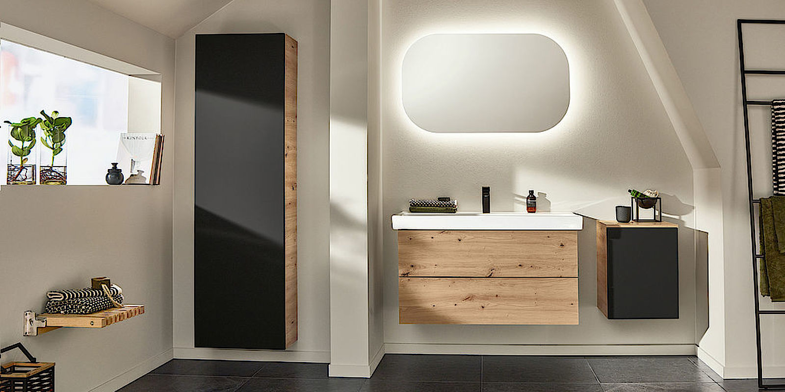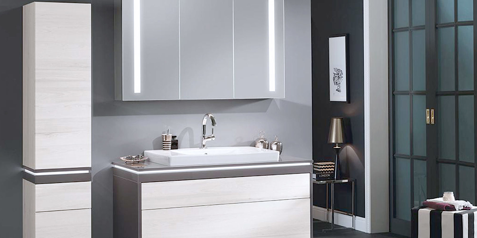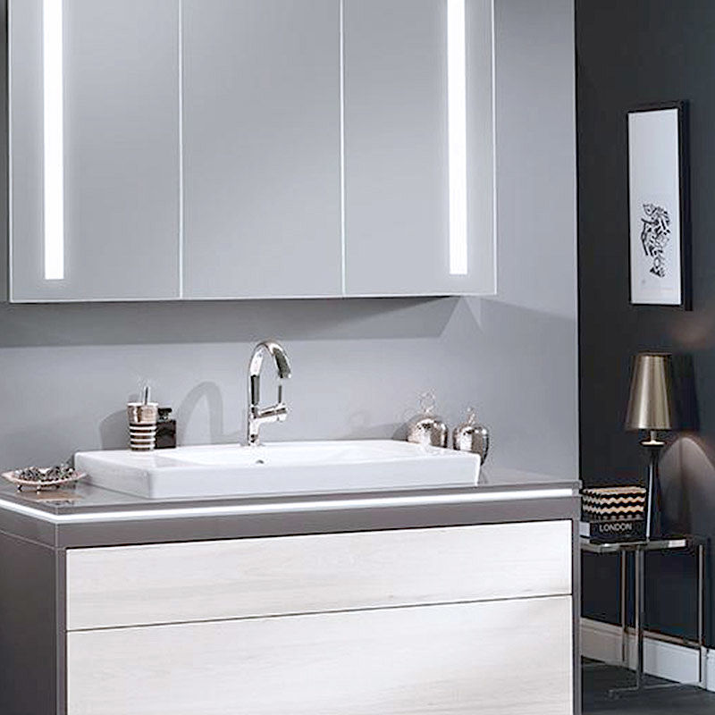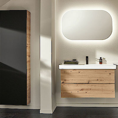 Und sämtliche Griffe, Beschläge, Accessoires und Leuchten sind von bester Qualität. So sind Spiegelschränke und Lichtspiegel ausschließlich mit energieeffizienten LEDs ausgestattet. Alle Elektroteile sind außerdem VDE-geprüft.
